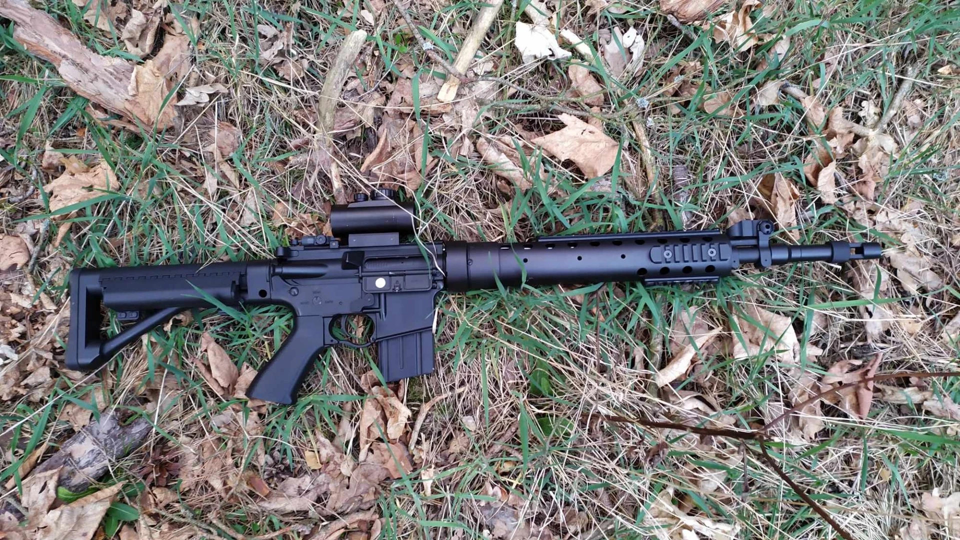 Kopie amerického dmr pro speciální účely od značky cyma v celkovém provedení. Zbraň byla osazena novou hop up komorou a přenášejí hlavní. Dále byl pro zbraň postaven mechabox na výkon 2,3 J pro hru na airsoftových hřištích. Tělo má nižší kvalitu a pár nepřesností, ale vše jde vyladit. Dá se říci, že zbraň odpovídá ceně a značce. S upgradem od nás je zbraň obávaným nepřítelem.